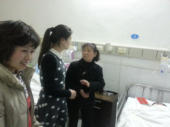 在新春佳節(jié)即將來臨之際,湖機國際開展“迎新春、送溫暖”活動。元月24日下午,湖機國際總經(jīng)理助理、工會主席肖雪梅,鋸床分公司生產(chǎn)部部長李學(xué)軍陪同天心區(qū)委非公工委專職副書記宋立湘及其全體班子成員在長沙市三醫(yī)院慰問了公司鋸床生產(chǎn)部下料工、特困黨員李春華。2013年12月下旬,李春華因中風(fēng)導(dǎo)致大面積腦梗死,目前偏癱在床且意識不清晰。宋立湘書記、肖雪梅主席分別代表區(qū)委、區(qū)工信局和湖機國際送上了新春祝福。隨后,和其妻子陳麗君詳細詢問了李春華的病情、家庭的狀況以及面臨的困難后,肖雪梅主席代表湖機國際表示將會重點關(guān)注李春華的病情,盡快為其辦理病退手續(xù),并表示在李春華出院后,安排為其辦理長沙市在職職工醫(yī)療(住院)互助計劃的醫(yī)療費用自費部分的補助。