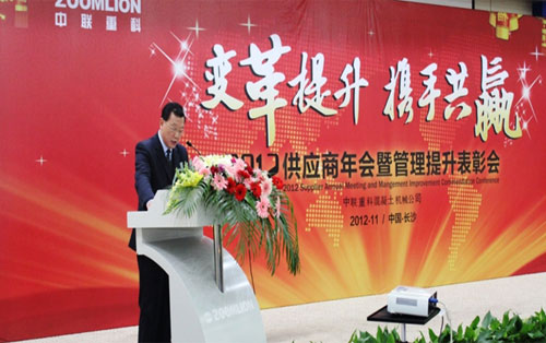 2012年11月21日,在中聯(lián)重科召開的2012年供應(yīng)商年會(huì)暨供應(yīng)商管理提升表彰會(huì)上,湖機(jī)國(guó)際榮獲“中聯(lián)重科2012管理提升銀獎(jiǎng)”。同時(shí),公司董事長(zhǎng)劉年紅作為獲獎(jiǎng)供應(yīng)商唯一企業(yè)代表在此次大會(huì)上發(fā)表了獲獎(jiǎng)感言。