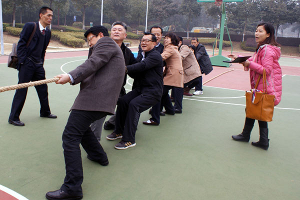 2014年元月26日上午10點(diǎn),微風(fēng)拂面,湖機(jī)國際第一屆“迎新春、團(tuán)結(jié)杯”拔河比賽在比賽的號令中開始。公司技術(shù)管理團(tuán)隊成員熱情高漲,在震天響的加油助威聲中,高管隊勝配套隊,鋸床隊勝職能隊。稍作休息后,最讓大家期待的決賽終于吹響了號角,高管隊VS鋸床隊,大家的加油助威聲更響亮了,雙方隊員拼了命地使勁,各個漲紅了臉,最終高管隊2:0戰(zhàn)勝鋸床隊取得了本次拔河比賽的冠軍。