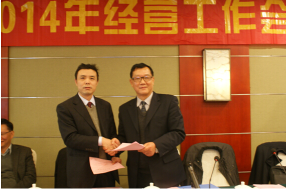 2014年年度經(jīng)營工作會(huì)議上,公司董事長劉年紅先生與公司董事、工程配套分公司經(jīng)理符韌先生簽訂2015年目標(biāo)責(zé)任書