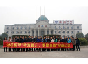 2014年元月26日上午9點(diǎn),湖機(jī)國(guó)際“轉(zhuǎn)變提升、勇攀高峰”登山比賽在風(fēng)光秀美的母山基地隆重..